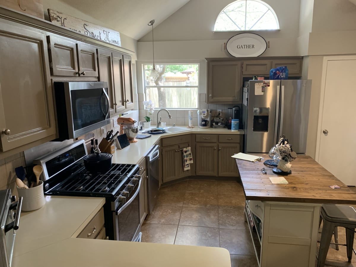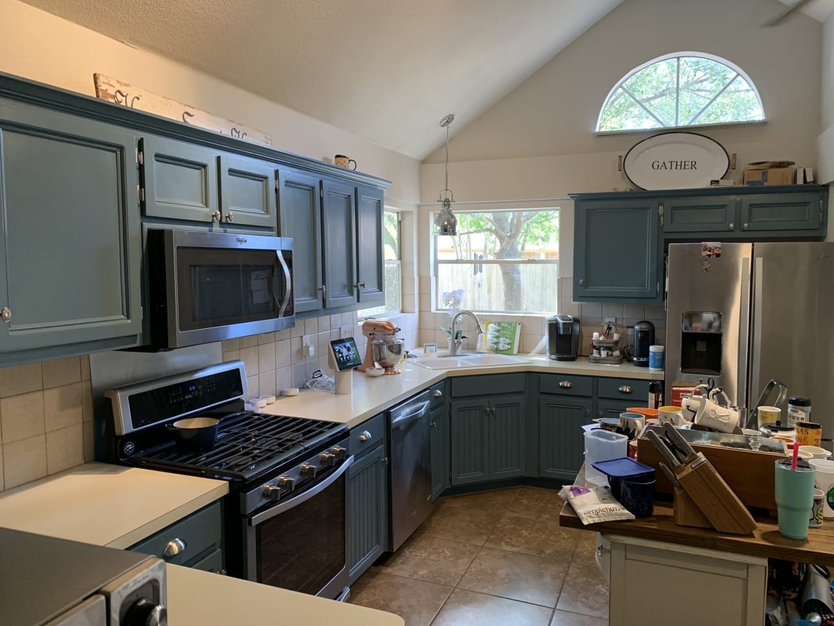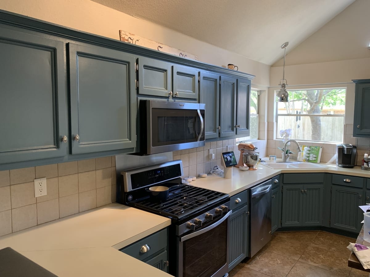 These kitchen cabinets didn’t look bad, but they had been painted with regular latex paint. Unfortunately it doesn’t last with the wear and tear that cabinets receive. Cabinets were sanded and prepped and re-painted with a high-quality oil-base paint that will look great and last for years.