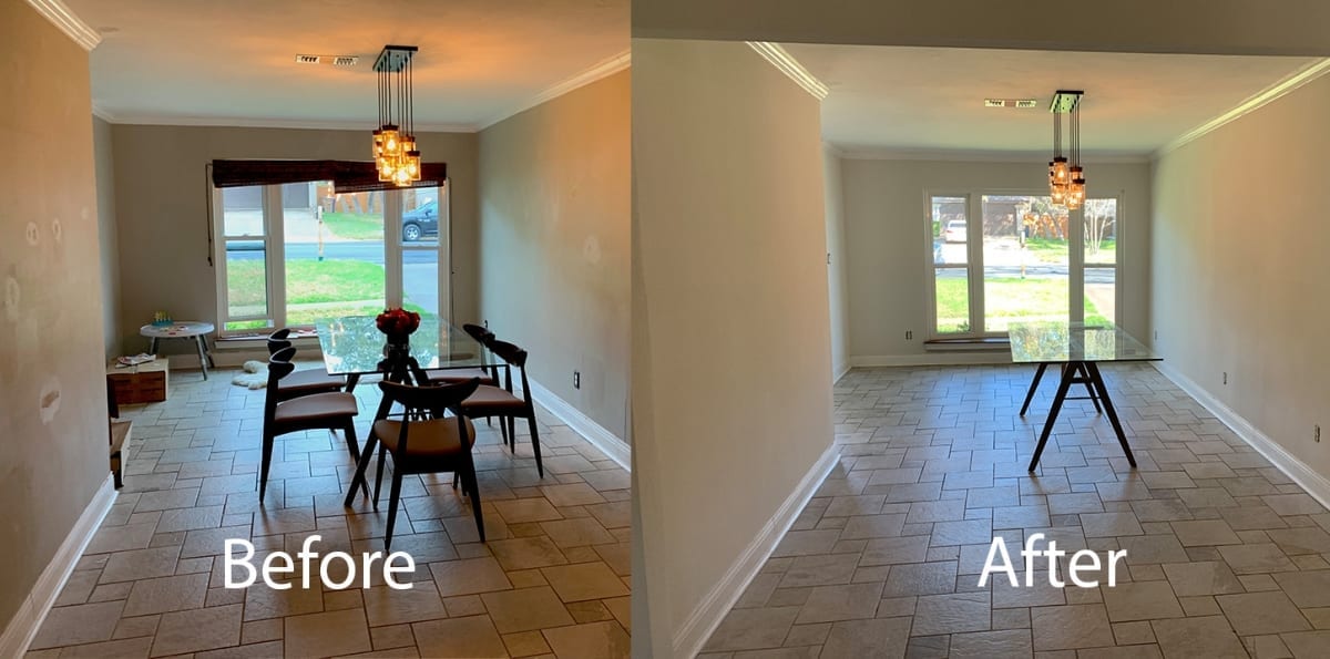 Older houses can accumulate lots of damaged drywall areas over time, requiring re-texturing of the drywall. This 40 yr-old house had walls that needed some TLC, and SurePro Painting came through! Walls in the living rooms, dining room, and entryway were completely floated out, sanded, and re-textured with a light orange-peel finish. A great way to give a house a more modern appeal.